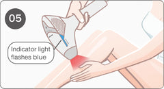 Step 5: Press the treatment window against your skin and move the device slowly, following each flash of the laser. Yellow light blinks; no button clicks needed during treatment.