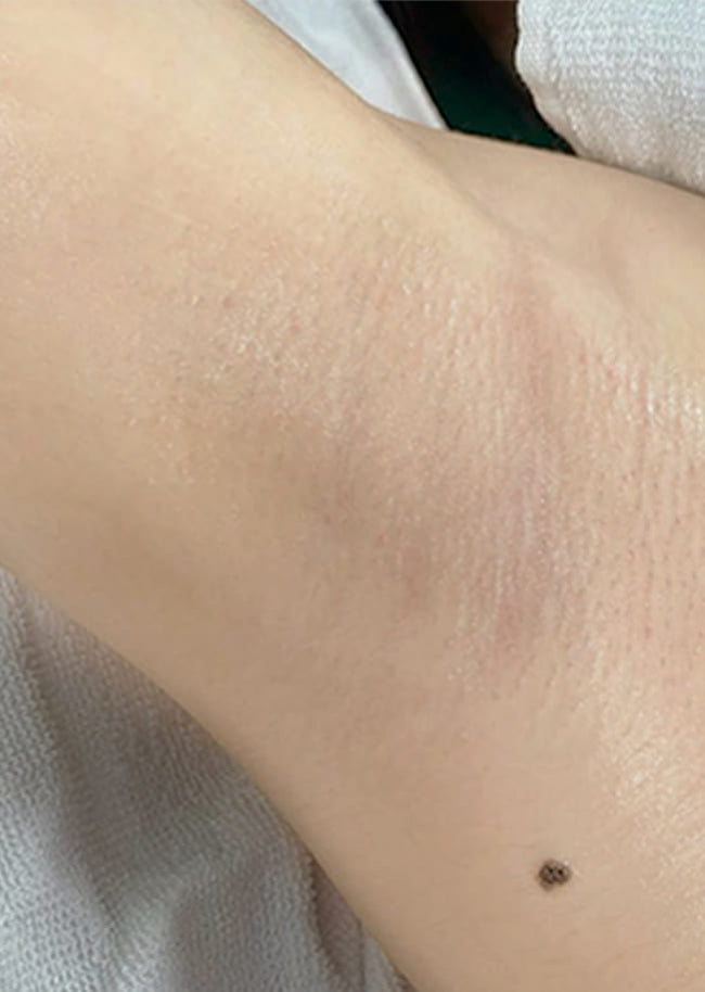 It utilizes an single-wavelength laser. Unlike IPL, the consistent light of the single-wavelength laser can be vertically irradiated into the skin. The minimal refraction and diffusion of light by the skin are insufficient to cause any harm to the eyes.
